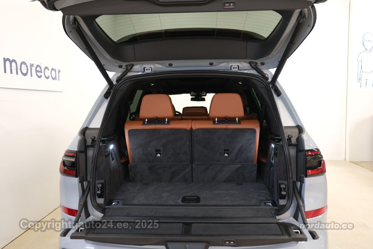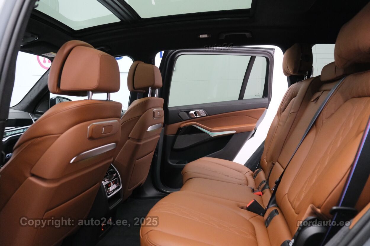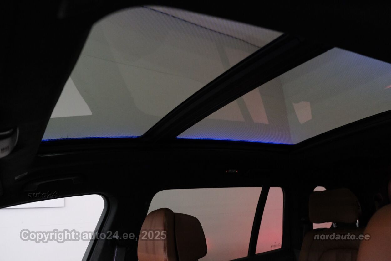 4 ustkliimaautomaatik, automaatpidurdussüsteem, roolivõimendi (kiirustundlik), kesklukustus (puldiga), ABS pidurid, elektrooniline seisupidur, turvapadi, turvakardinad, immobilisaator, signalisatsioon, lisapidurituli, kokkupõrget ennetav pidurisüsteem, stabiilsuskontroll, pidurdusjõukontroll, sõiduraja hoidmise abisüsteem, sõiduraja vahetamise abisüsteem, liiklusmärkide tuvastus ja kuvamine, pimenurga hoiatus, veojõukontroll, vihmasensor, ISOFIX lasteistme kinnitus (taga), kõrvalistuja turvapadja väljalülitamise võimalus, automaatne paigalseismise funktsioon / mägistardi abi, mägipidur, valgustuspakett, udutuled (tagumine), LED (päevatuled, tagatuled, lähituled, kaugtuled), päevasõidutulede automaatne lülitus, kaugtulede ümberlülitamise assistent, kurvituled, suverehvid, valuveljed (22"), rehvirõhu kontrollsüsteem, reguleeritav roolisammas (kõrgus ja sügavus, elektriliselt, mäluga), multifunktsionaalne rool, nahkkattega rool, sportrool, soojendusega rool, käiguvahetus roolilt, Harman/Kardon stereo (USB pesaga, originaal), helivõimendi, kõlarid, subwoofer, Apple CarPlay, Android Auto, ekraan (ees), navigatsiooniseade (kaardiga), autokompuuter, käed vabad süsteem, iluliistud salongis, taskud esiistmete seljatugedes, jalamatid (veluurist), topsihoidjad, tume laepolster, nahkpolster, 4x elektriliselt reguleeritavad istmed (2x mäludega), 4x istmesoojendused, massaažifunktsiooniga istmed (juhil, kõrvalistmel), ventileeritavad istmed (ees), käetugi ees (laekaga), käetugi taga, tagaistme seljatugi allaklapitav, Comfort istmed, elektrilised välispeeglid (soojendusega, kokkuklapitavad), 4x elektrilised akende tõstukid, toonitud klaasid, katuseluuk (klaasist, elektriline), püsikiiruse hoidja (eessõitjaga distantsi hoidev), panoraamkatus (klaasist), 2x peeglid päikesesirmides (valgustusega), Webasto mootori eelsoojendus, eraldi kliimaseade tagaistmetele, automaatselt tumenevad peeglid (sees, väljas), uste sisevalgustus, kohtvalgustid, parkimisandurid (ees, taga), parkimiskaamera (360), Coming-/Leaving-Home funktsioon, digitaalne näidikutepaneel, info kuvamine esiklaasile, telefoni juhtmevaba laadimine, võtmeta avamine, võtmeta käivitus, uste servosulgurid, start-stopp süsteem, 12v pistikupesad, õhkvedrustus, reguleeritav vedrustus (kõrgus), pakiruumi avamine elektriliselt, katusereelingud, veokonks (elektriline, teisaldatav), tagaklaasi soojendus, välistemperatuuri näidik, topeltklaasid, tagaklaasi puhasti, M Sport väljalase, Soft Close, Bmw Niere Iconic Glow, Webasto, 5G E-SIM, Sky Lounge panoraam,