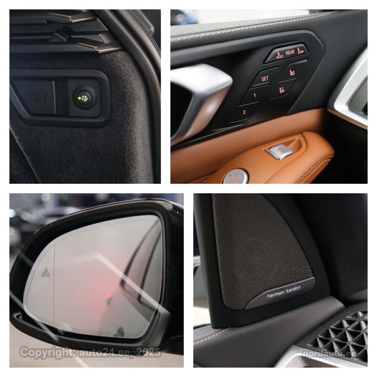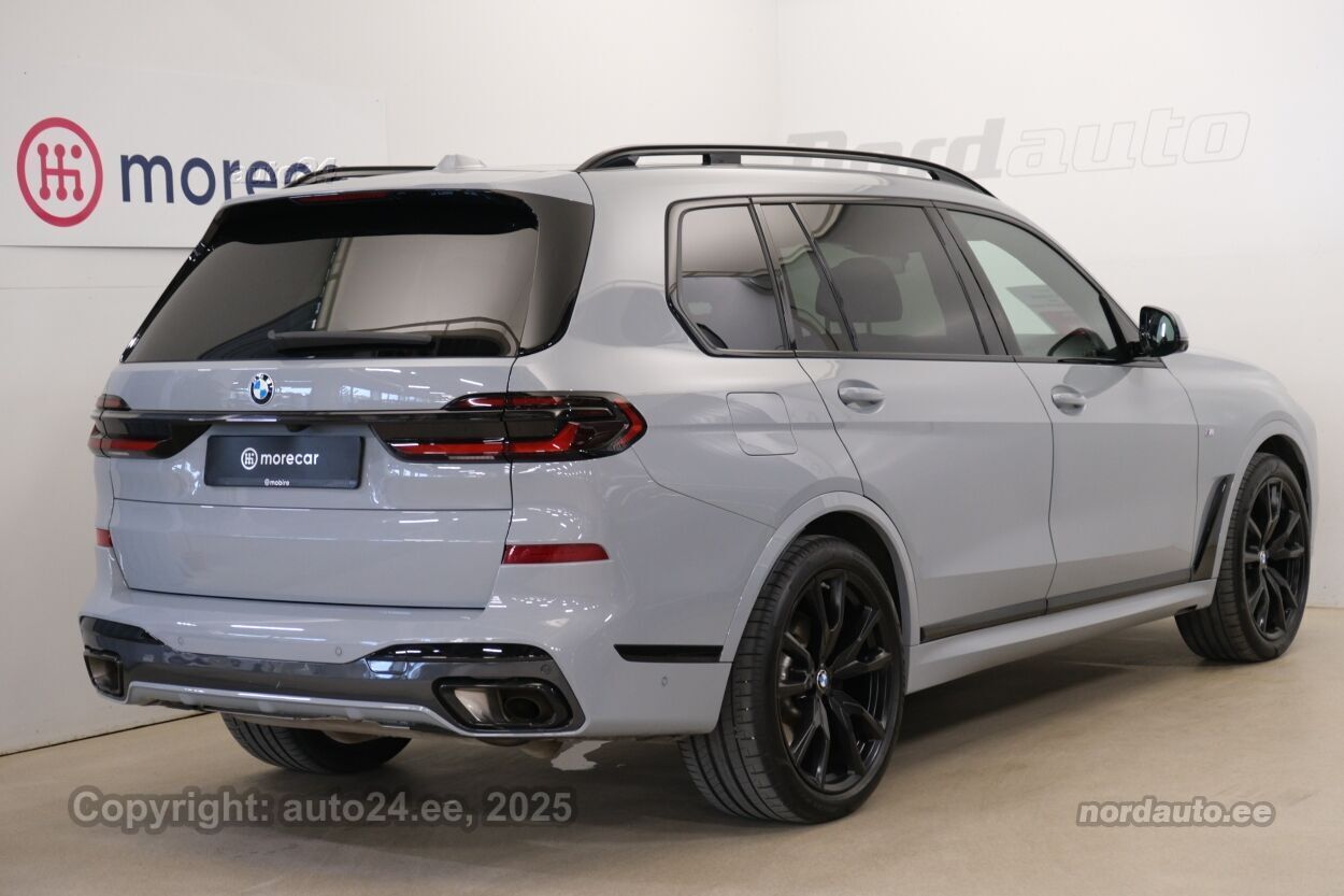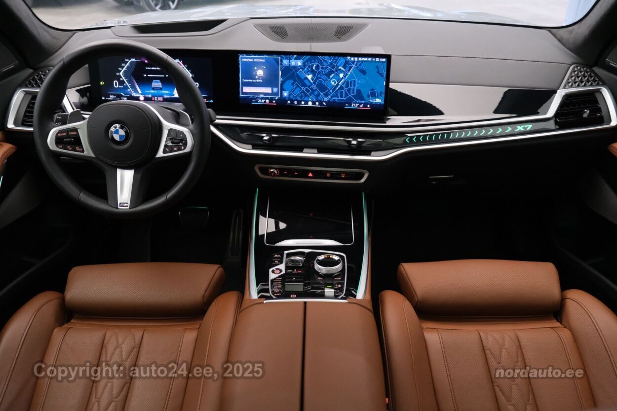 4 ustkliimaautomaatik, automaatpidurdussüsteem, roolivõimendi (kiirustundlik), kesklukustus (puldiga), ABS pidurid, elektrooniline seisupidur, turvapadi, turvakardinad, immobilisaator, signalisatsioon, lisapidurituli, kokkupõrget ennetav pidurisüsteem, stabiilsuskontroll, pidurdusjõukontroll, sõiduraja hoidmise abisüsteem, sõiduraja vahetamise abisüsteem, liiklusmärkide tuvastus ja kuvamine, pimenurga hoiatus, veojõukontroll, vihmasensor, ISOFIX lasteistme kinnitus (taga), kõrvalistuja turvapadja väljalülitamise võimalus, automaatne paigalseismise funktsioon / mägistardi abi, mägipidur, valgustuspakett, udutuled (tagumine), LED (päevatuled, tagatuled, lähituled, kaugtuled), päevasõidutulede automaatne lülitus, kaugtulede ümberlülitamise assistent, kurvituled, suverehvid, valuveljed (22"), rehvirõhu kontrollsüsteem, reguleeritav roolisammas (kõrgus ja sügavus, elektriliselt, mäluga), multifunktsionaalne rool, nahkkattega rool, sportrool, soojendusega rool, käiguvahetus roolilt, Harman/Kardon stereo (USB pesaga, originaal), helivõimendi, kõlarid, subwoofer, Apple CarPlay, Android Auto, ekraan (ees), navigatsiooniseade (kaardiga), autokompuuter, käed vabad süsteem, iluliistud salongis, taskud esiistmete seljatugedes, jalamatid (veluurist), topsihoidjad, tume laepolster, nahkpolster, 4x elektriliselt reguleeritavad istmed (2x mäludega), 4x istmesoojendused, massaažifunktsiooniga istmed (juhil, kõrvalistmel), ventileeritavad istmed (ees), käetugi ees (laekaga), käetugi taga, tagaistme seljatugi allaklapitav, Comfort istmed, elektrilised välispeeglid (soojendusega, kokkuklapitavad), 4x elektrilised akende tõstukid, toonitud klaasid, katuseluuk (klaasist, elektriline), püsikiiruse hoidja (eessõitjaga distantsi hoidev), panoraamkatus (klaasist), 2x peeglid päikesesirmides (valgustusega), Webasto mootori eelsoojendus, eraldi kliimaseade tagaistmetele, automaatselt tumenevad peeglid (sees, väljas), uste sisevalgustus, kohtvalgustid, parkimisandurid (ees, taga), parkimiskaamera (360), Coming-/Leaving-Home funktsioon, digitaalne näidikutepaneel, info kuvamine esiklaasile, telefoni juhtmevaba laadimine, võtmeta avamine, võtmeta käivitus, uste servosulgurid, start-stopp süsteem, 12v pistikupesad, õhkvedrustus, reguleeritav vedrustus (kõrgus), pakiruumi avamine elektriliselt, katusereelingud, veokonks (elektriline, teisaldatav), tagaklaasi soojendus, välistemperatuuri näidik, topeltklaasid, tagaklaasi puhasti, M Sport väljalase, Soft Close, Bmw Niere Iconic Glow, Webasto, 5G E-SIM, Sky Lounge panoraam,