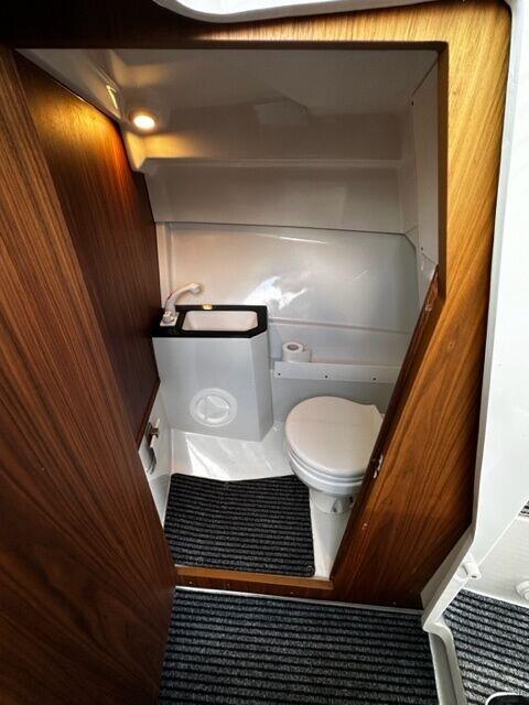 ustpoolnahkpolster, raadiojaam, roostevaba terasest reelingud, navigatsioonituled, valamu, külmik, WC
