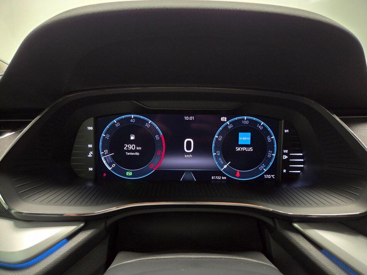 5 ustkliimaautomaatik, roolivõimendi (kiirustundlik), kesklukustus (puldiga), ABS pidurid, elektrooniline seisupidur, turvapadi, turvakardinad, immobilisaator, signalisatsioon, lisapidurituli, stabiilsuskontroll, kokkupõrget ennetav pidurisüsteem, pidurdusjõukontroll, sõiduraja hoidmise abisüsteem, veojõukontroll, vihmasensor, ISOFIX lasteistme kinnitus, automaatne paigalseismise funktsioon / mägistardi abi, kõrvalistuja turvapadja väljalülitamise võimalus, juhi väsimuse tuvastamise süsteem, udutuled (eesmised), LED (tagatuled, päevatuled, lähituled, kaugtuled), esitulede pesurid, talverehvid, autoga antakse kaasa (suverehvid), rehvirõhu kontrollsüsteem, reguleeritav roolisammas (kõrgus ja sügavus), multifunktsionaalne rool, nahkkattega rool, soojendusega rool, stereo (originaal), kõlarid, Apple CarPlay, Android Auto, ekraan (ees), autokompuuter, käed vabad süsteem, iluliistud salongis, taskud esiistmete seljatugedes, jalamatid (tekstiilist), topsihoidjad (ees, taga), poolnahkpolster, istmed reguleeritava kõrgusega (juhiiste), 2x istmesoojendused, käetugi ees (laekaga), käetugi taga, tagaistme seljatugi allaklapitav, elektrilised välispeeglid (soojendusega, kokkuklapitavad), 4x elektrilised akende tõstukid, toonitud klaasid, püsikiiruse hoidja, 2x peeglid päikesesirmides, kohtvalgustid, parkimisandurid (ees, taga), parkimiskaamera, Coming-/Leaving-Home funktsioon, digitaalne näidikutepaneel, võtmeta avamine, võtmeta käivitus, start-stopp süsteem, 12v pistikupesad, reisiarvesti, pakiruumi avamine elektriliselt (puldist), pagasikate, kaubakinnituse konksud, veokonks, tagaklaasi soojendus, aknapesupihustite sulatus, esi- ja tagarataste porikummid, Soojendusega esiklaa, Adaptiivne püsikiirushoidik, Esilaternate pesurid + klaasipesuvedeliku taseme indikaator, Istmekatted nahk/tekstiil: istme keskosa tekstiil, sise- ja välisservad, tagakülg ja peatugi kunstnahk + pagasiruumist allaklapitav tagaistme seljatugi UK3, ainult koos interjööriga BG, KESSY + alarm: võtmeta avamis- ja käivitussüsteem koos alarmsüsteemiga, võtmeta avamine nii esi- kui tagaustele, Elektrilise lukustussüsteemiga haagisekonks, adapteriga, 2-kodaraga soojendusega nahkrool raadio ja telefoni juhtimise ning DSG käiguvahetusega roolil,