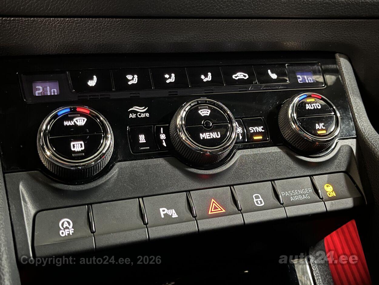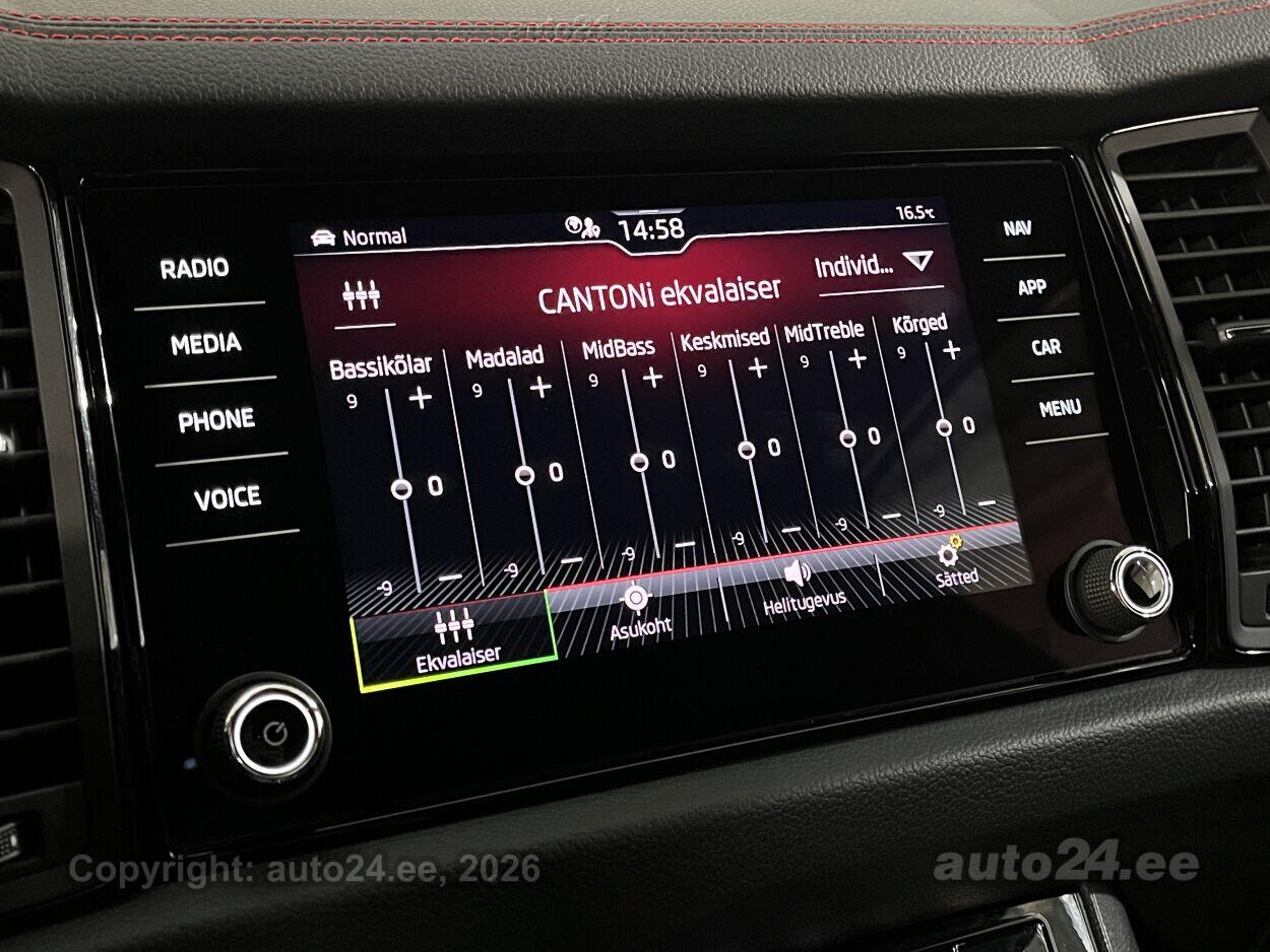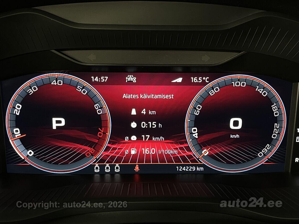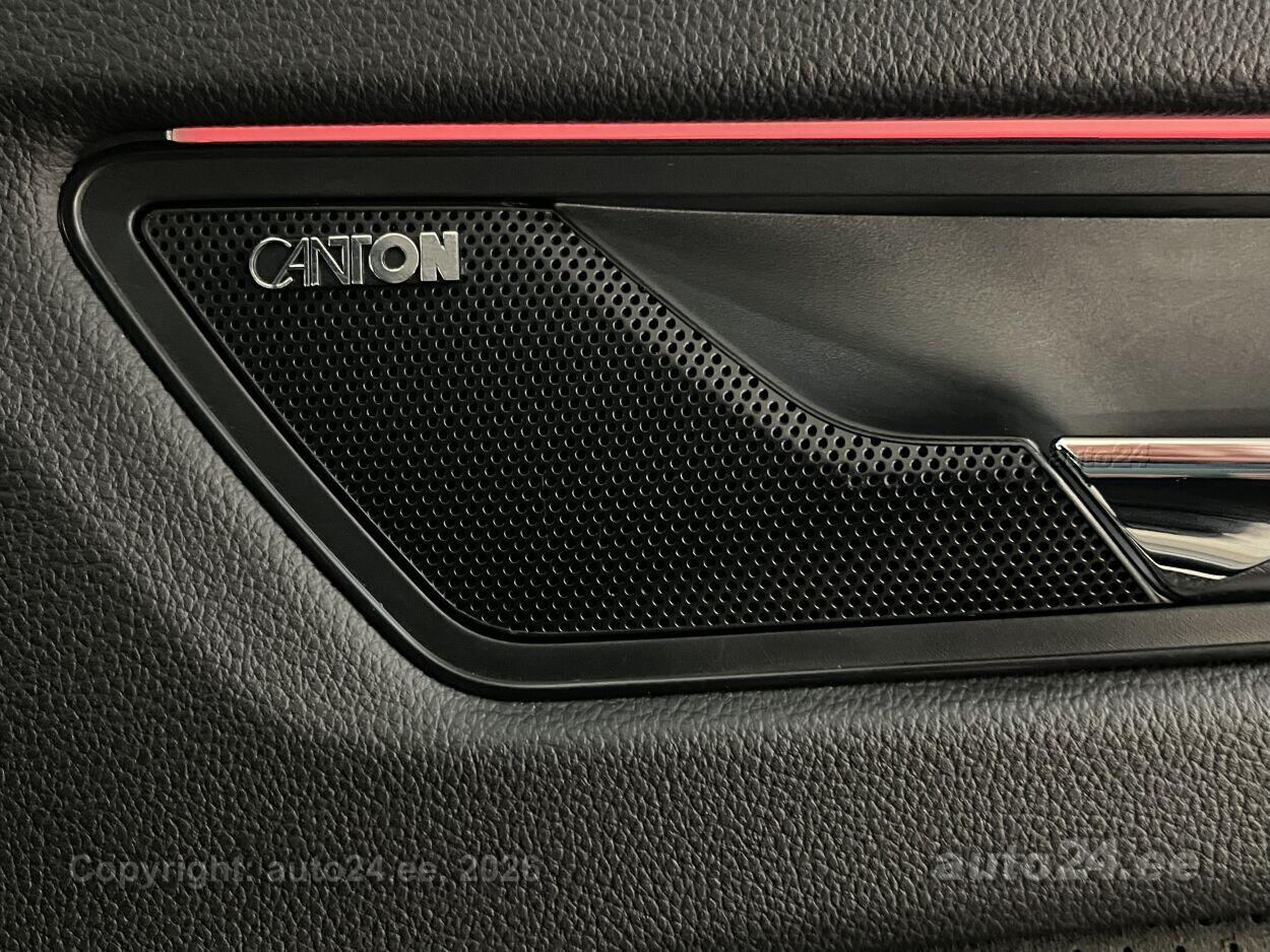 5 ustkliimaautomaatik, roolivõimendi, kesklukustus (puldiga), ABS pidurid, elektrooniline seisupidur, 6x turvapadi, turvakardinad, immobilisaator, signalisatsioon (kaldeanduriga, mahuanduriga), lisapidurituli, stabiilsuskontroll, Front Assist kokkupõrget ennetav pidurisüsteem, pidurdusjõukontroll, veojõukontroll, turvavööde eelpingutid esiistmetel, vihmasensor, ISOFIX lasteistme kinnitus, kõrvalistuja turvapadja väljalülitamise võimalus, juhi väsimuse tuvastamise süsteem, udutuled, LED (tagatuled, päevatuled, lähituled, kaugtuled), päevasõidutulede automaatne lülitus, talverehvid (lamellrehvid), valuveljed (20"), rehvirõhu kontrollsüsteem, reguleeritav roolisammas (kõrgus ja sügavus), multifunktsionaalne rool, nahkkattega rool, sportrool, soojendusega rool, käiguvahetus roolilt, Canton stereo (USB pesaga, originaal), helivõimendi, kõlarid, subwoofer, Apple CarPlay, Android Auto, ekraan (ees), autokompuuter, käed vabad süsteem, jalamatid, nahkkattega käigukanginupp, tume laepolster, Alcantara poolnahkpolster, 2x elektriliselt reguleeritavad istmed (mäludega), istmed reguleeritava kõrgusega (juhiiste, kõrvalistuja iste), istmesoojendused, käetugi ees (laekaga), käetugi taga, tagaistme seljatugi allaklapitav, elektrilised välispeeglid (soojendusega, kokkuklapitavad), 4x elektrilised akende tõstukid, toonitud klaasid, püsikiiruse hoidja (eessõitjaga distantsi hoidev), automaatselt tumenevad peeglid (sees), parkimisandurid (ees, taga), parkimiskaamera, Coming-/Leaving-Home funktsioon, digitaalne näidikutepaneel, võtmeta avamine, võtmeta käivitus, start-stopp süsteem, 12v pistikupesad, pakiruumi avamine elektriliselt (puldist), pagasikate, katusereelingud, elektrilise soojendusega esiklaas, tagaklaasi soojendus, välistemperatuuri näidik, esi- ja tagarataste porikummid, tagaklaasi puhasti, El. seadistatavad esiistmed, mälufunktsiooniga, Kaugjuhtimisega seisuküte, Soojendusega esiklaas + vihmasensor, Adaptiivne kiirushoidik koos kiirusepiirangu seadmise võimalusega, 3-kodaraga, soojendusega sportrool raadio ja telefoni juhtimisega ning käiguvahetuslabadega, Bluetooth käed-vabad telefonisüsteem koos telefonilaekaga keskkonsoolis (ühendus välisantenniga), juhtmeta laadimise funktsioon, Tagurduskaamera, Audiosüsteem Canton: 4 kõlarit esiustes, 4 tagaustes, 1 keskel armatuurlauas, 1 aktiivbassikõlar pagasiruumis, digitaalne võimendi, koguvõimsus 575W, Täiendava mürasummutusega esimesed külgaknad + tumedaks toonitud klaasid taga, alates B-piilarist (SunSet)